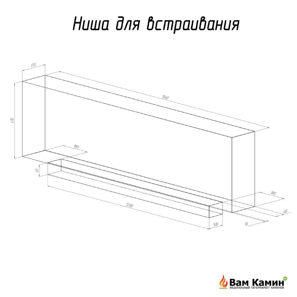 Встраиваемый биокамин ELLIOT Horizontal 1800 предназначен для встраивания в глухие ниши из гипсокартона, кирпича, пеноблоков, бетона.